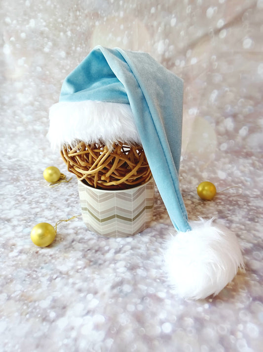 Baby Blue Santa hat,Baby Santa Hat photo prop ,Santa Hat photo-prop,blue velvet sleepy santa hat,Christmas santa hat,velvet baby hat prop