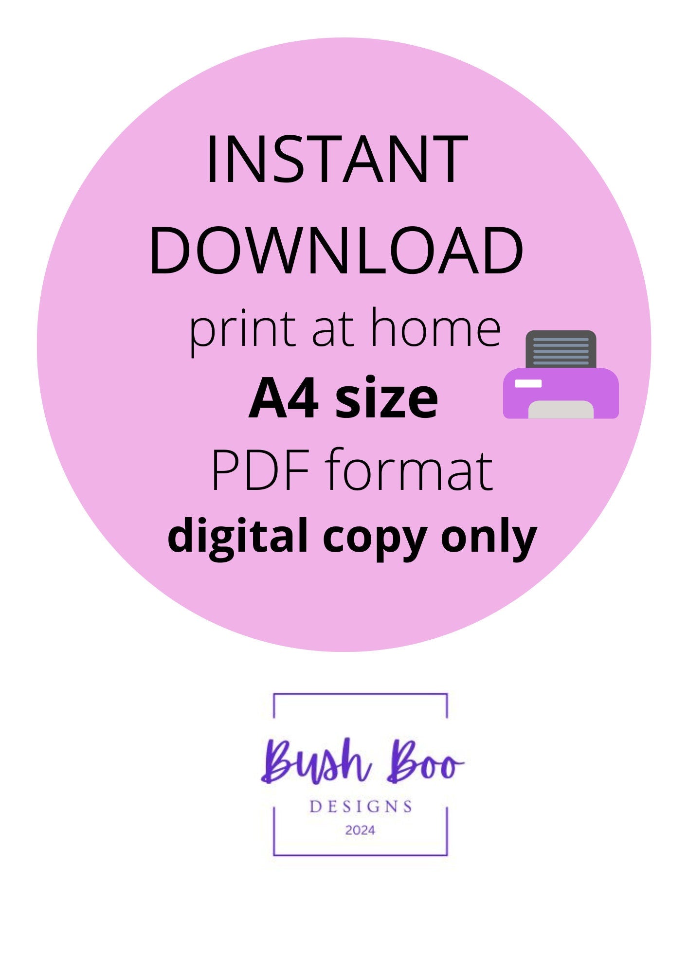 - Print at home - please ensure your printer settings are set to A4 portrait , I recommend using a good quality paper or cardstock for best results.